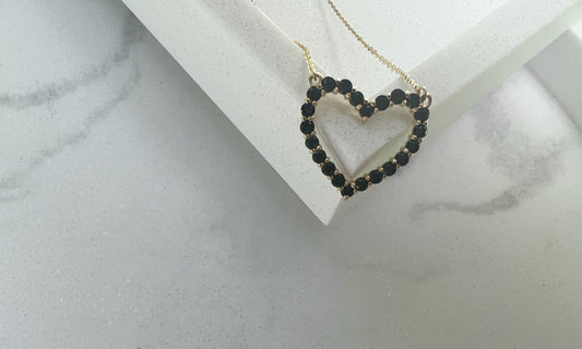 Gold and black onyx heart necklace